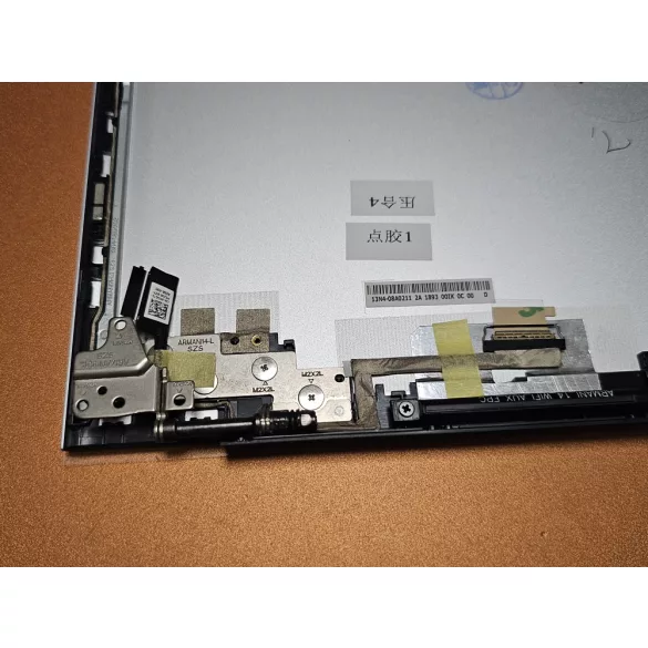 Gyári kijelző fedlap zsanérokkal, LCD és Wifi kábelekkel.