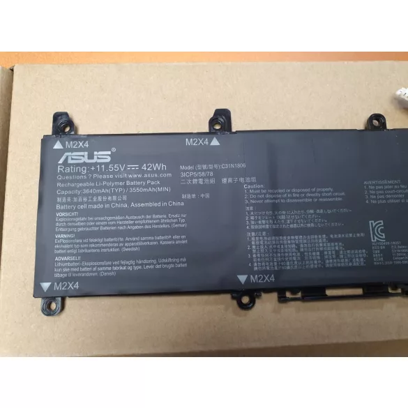 3650 mAh kapacitású gyári Asus akkumulátor OEM csomagolásban.