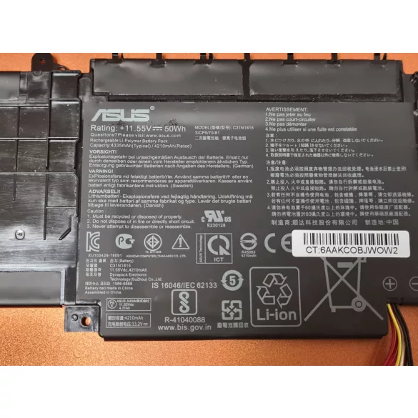 3650 mAh kapacitású gyári Asus akkumulátor OEM csomagolásban.